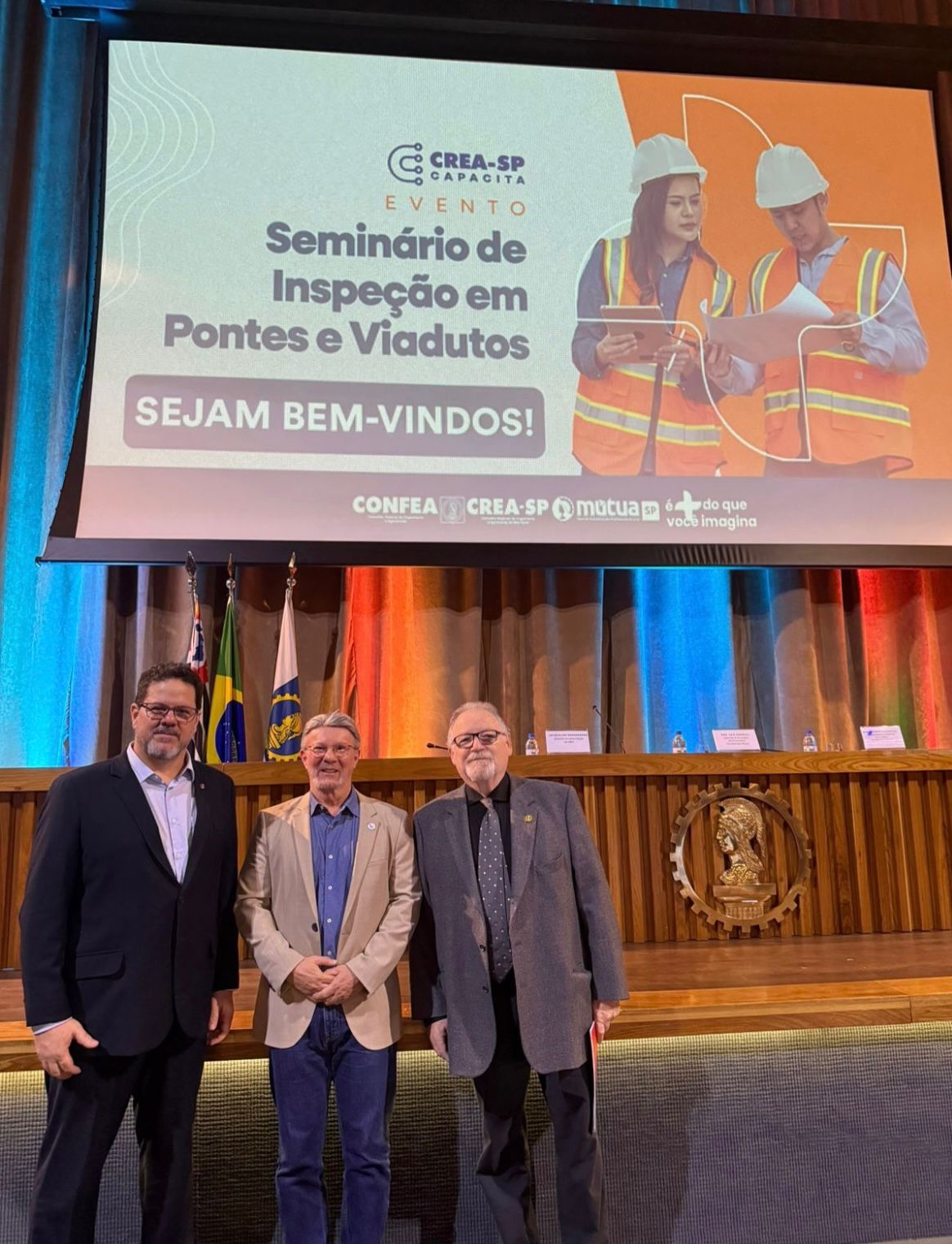 A aeamc participou na quarta-feira, dia 5 de novembro, do Seminário Técnico: Inspeção em Pontes e Viadutos, promovido pelo Comitê de Fiscalização de Pontes e Viadutos do Crea-SP. Destaque para a presença de alunos do 10º semestre do curso de Engenharia Civil da Universidade de Mogi das Cruzes (UMC), que foram ao evento no auditório do Conselho na Avenida Angélica, em São Paulo, convidados pela aeamc. Também participaram o Presidente da aeamc, Eng. Miguel Assis, e os Diretores, Eng. Fernando Telles Teixeira e Eng. John Hendriu.